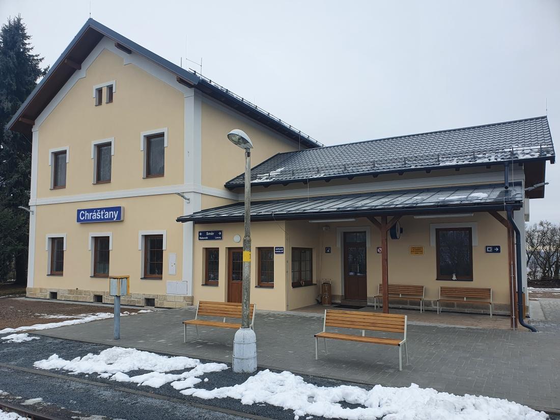 Stavební práce zahrnovaly opravu střechy, fasády, elektroinstalací, čekárny a dopravní kanceláře v žst. Chrášťany. Součástí byla i demolice veřejných toalet a nové barevné řešení budovy.