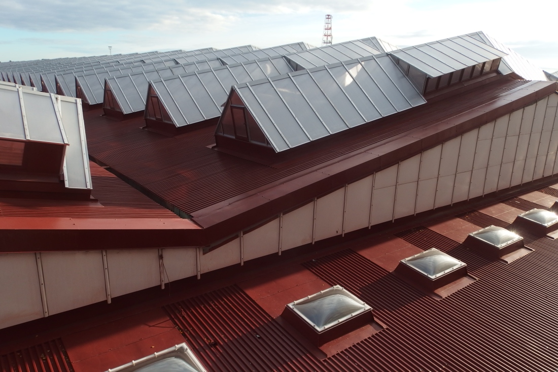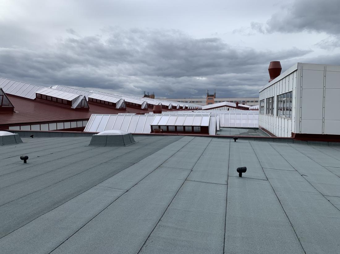Rekonstrukce střech hal areálu depo Zličín zahrnovala zateplení a snížení energetické náročnosti provozních objektů Dopravního podniku hl. m. Prahy.